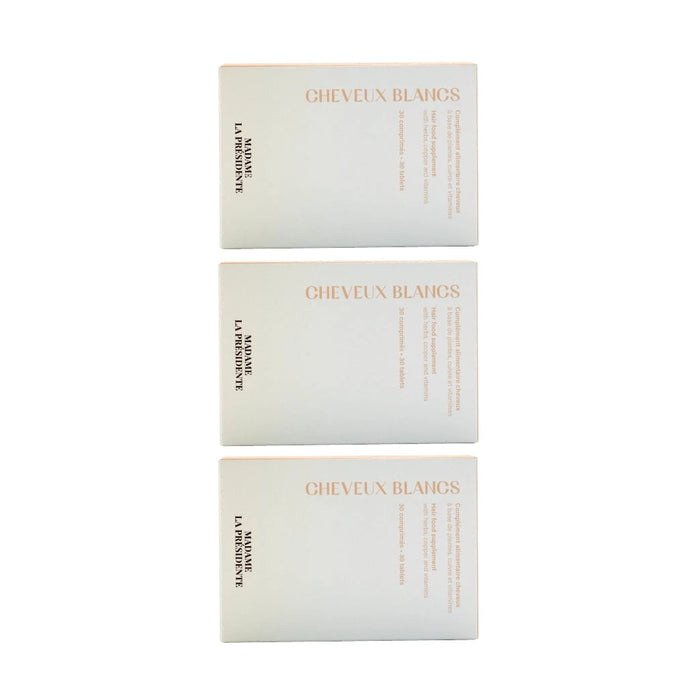 Thanks to its composition, Madame la Présidente's 3-month White Hair treatment helps prevent age-related changes. It will contribute to normal hair pigmentation.